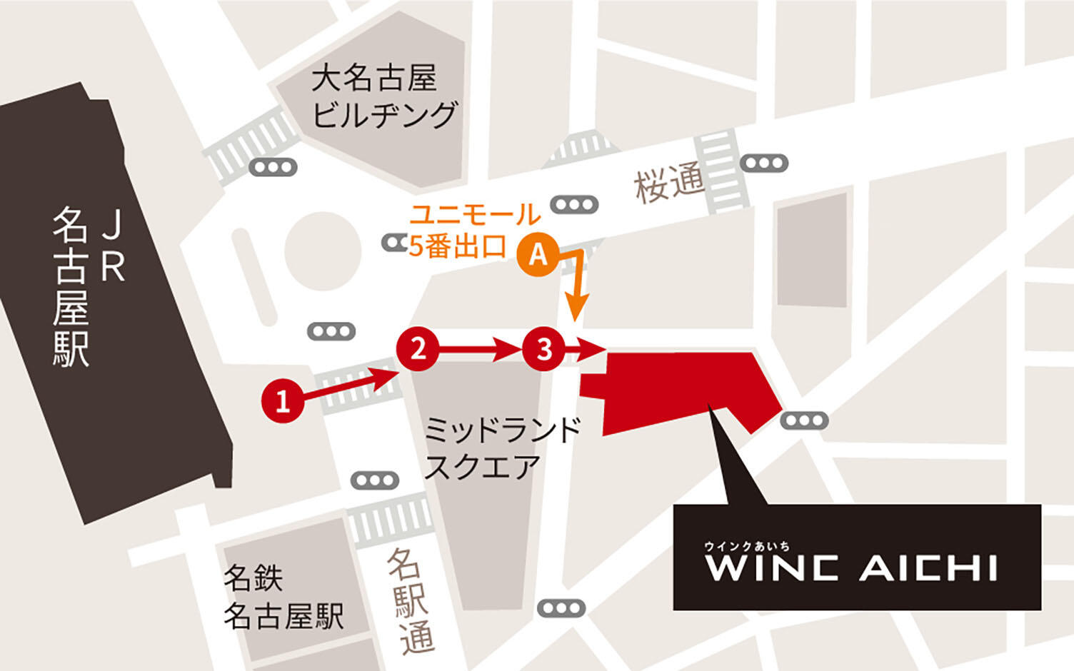 各線名古屋駅より徒歩5分 ウインクあいち地図